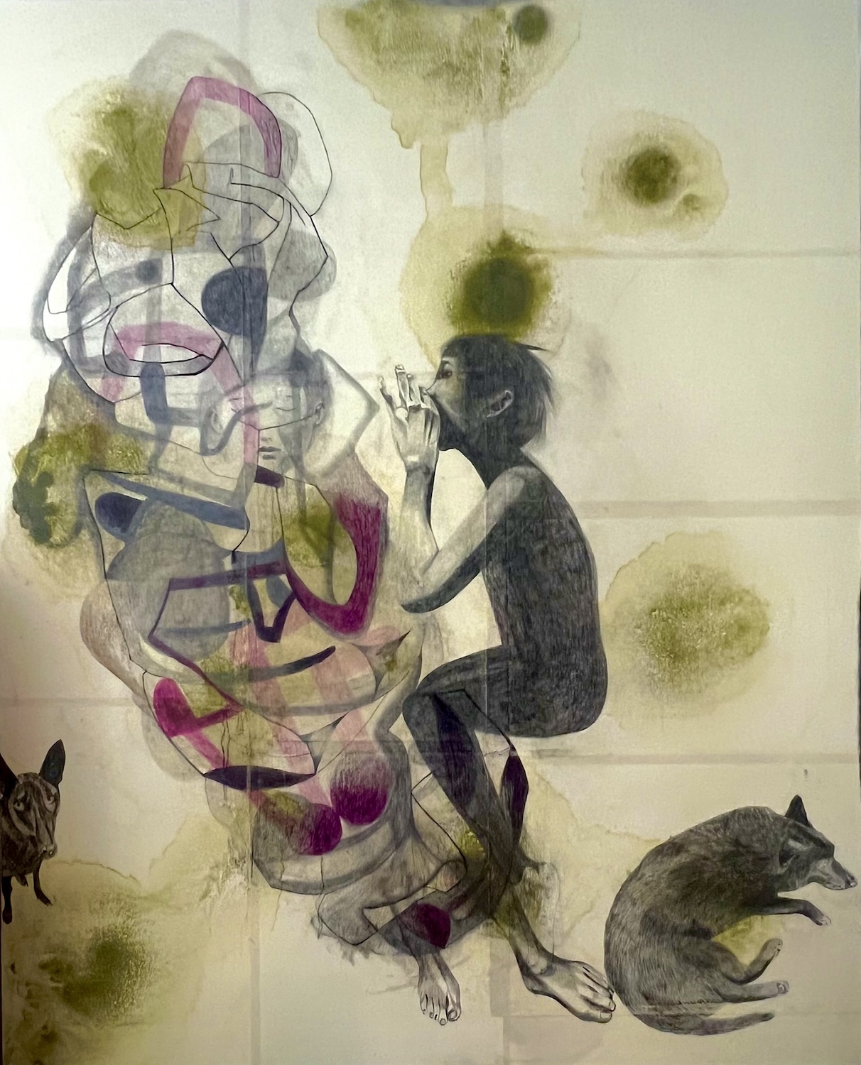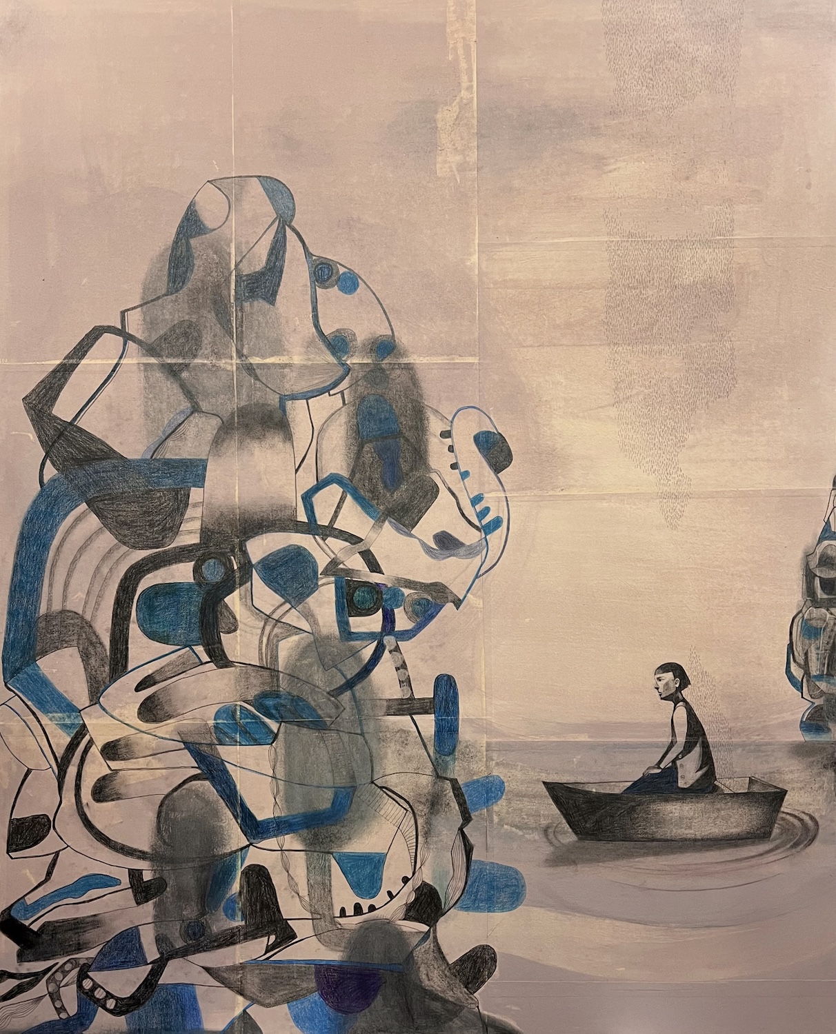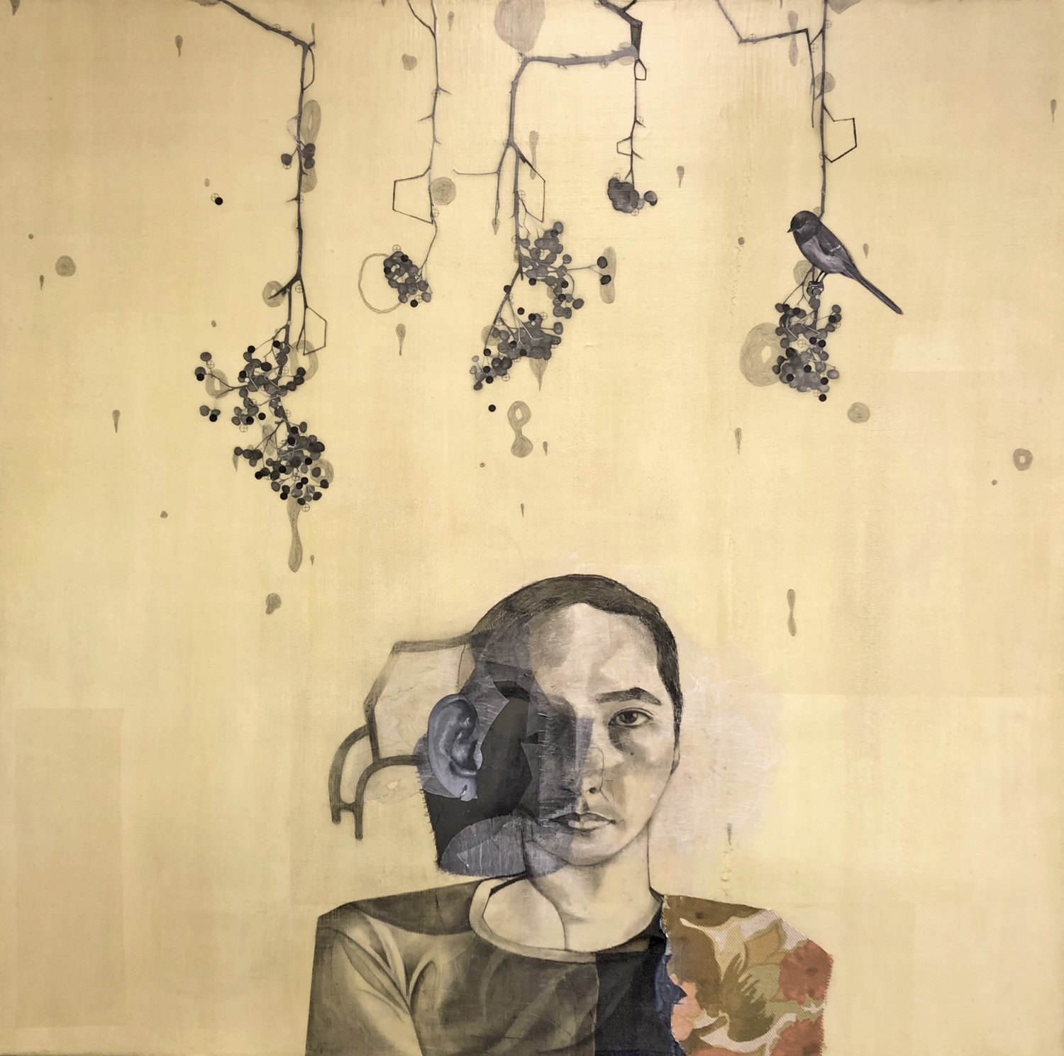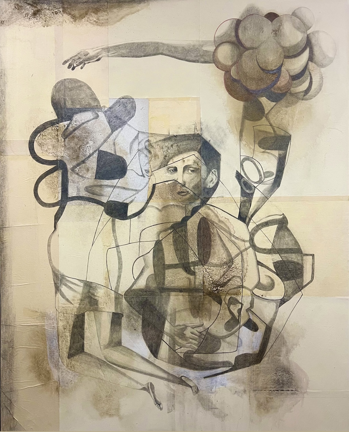 Graphite pencil, colored pencil, charcoal, acrylic and paper on canvas